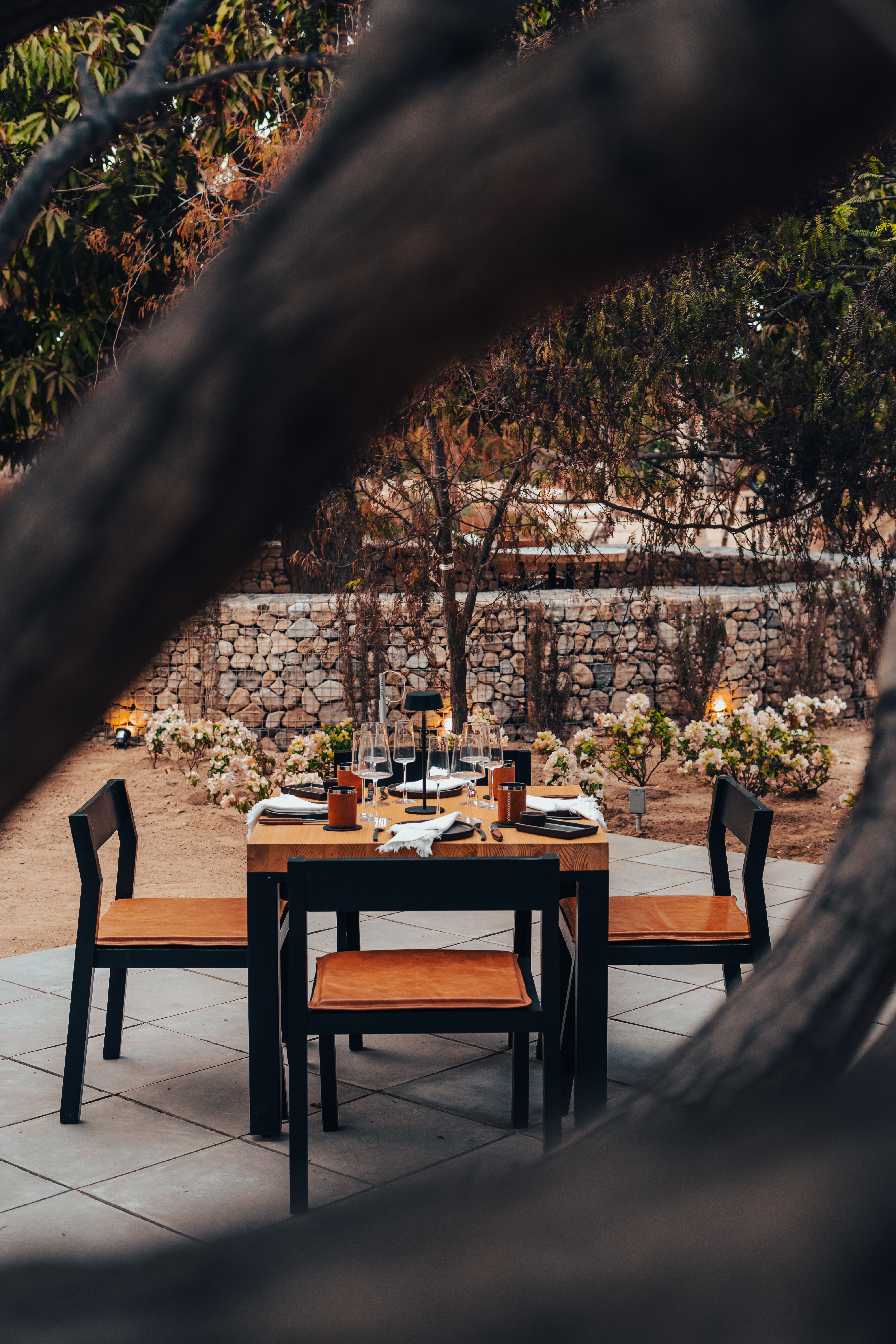 LIMO sits outdoors at Suelo Sur beneath native mesquite trees.